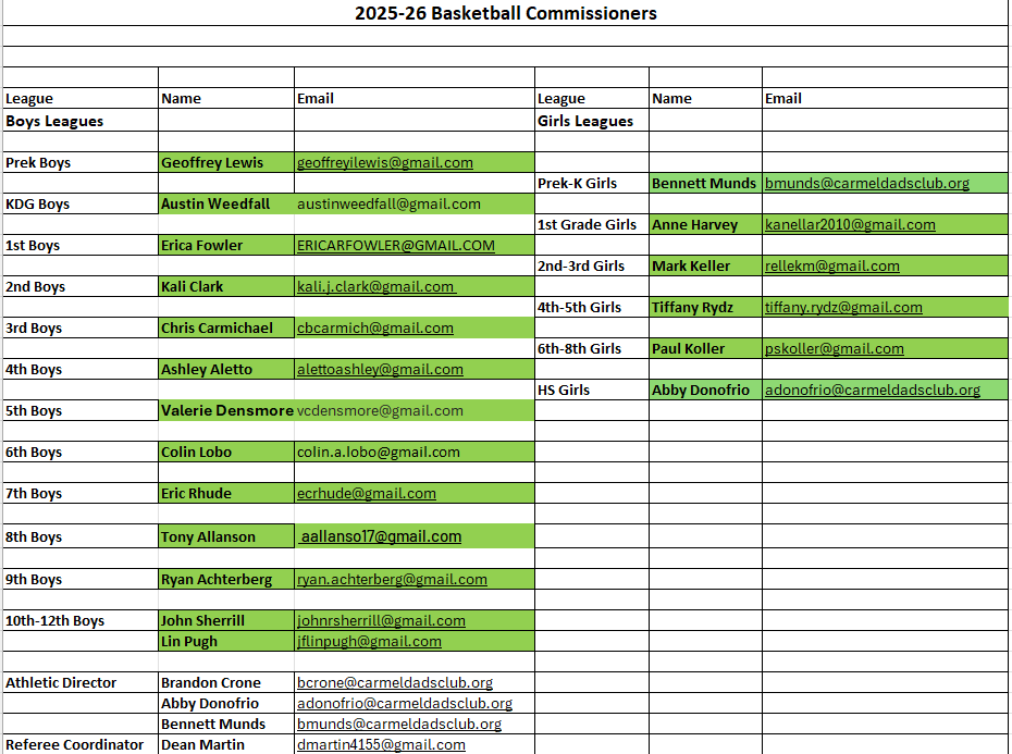 The Carmel Dads’ Club Recreational Basketball Program is designed for players of all skill levels. Our goal is to teach the great game of basketball in an environment where teamwork, sportsmanship, fun and love of the game are emphasized.
