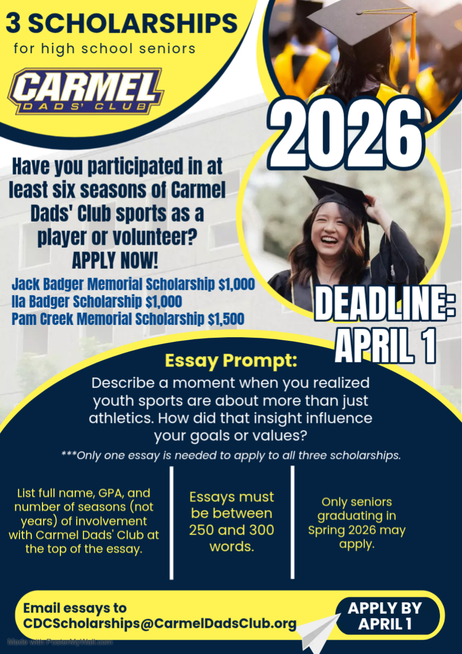 Thank you to all those who applied for this year's three Carmel Dads' Club Scholarships! Congratulations to the following 2025 scholarship winners: