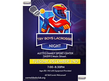 This is a free event for all skill levels on Tuesday, December 2, from 7:00-8:30 p.m. at the Aletto Family Sports Center. Equipment will be provided. Players ages 6 to 14 are welcome.